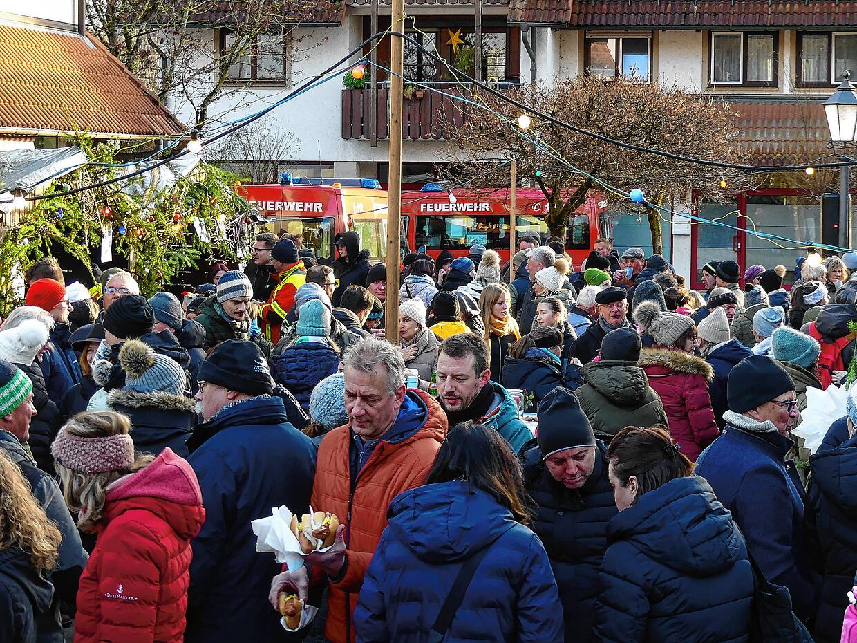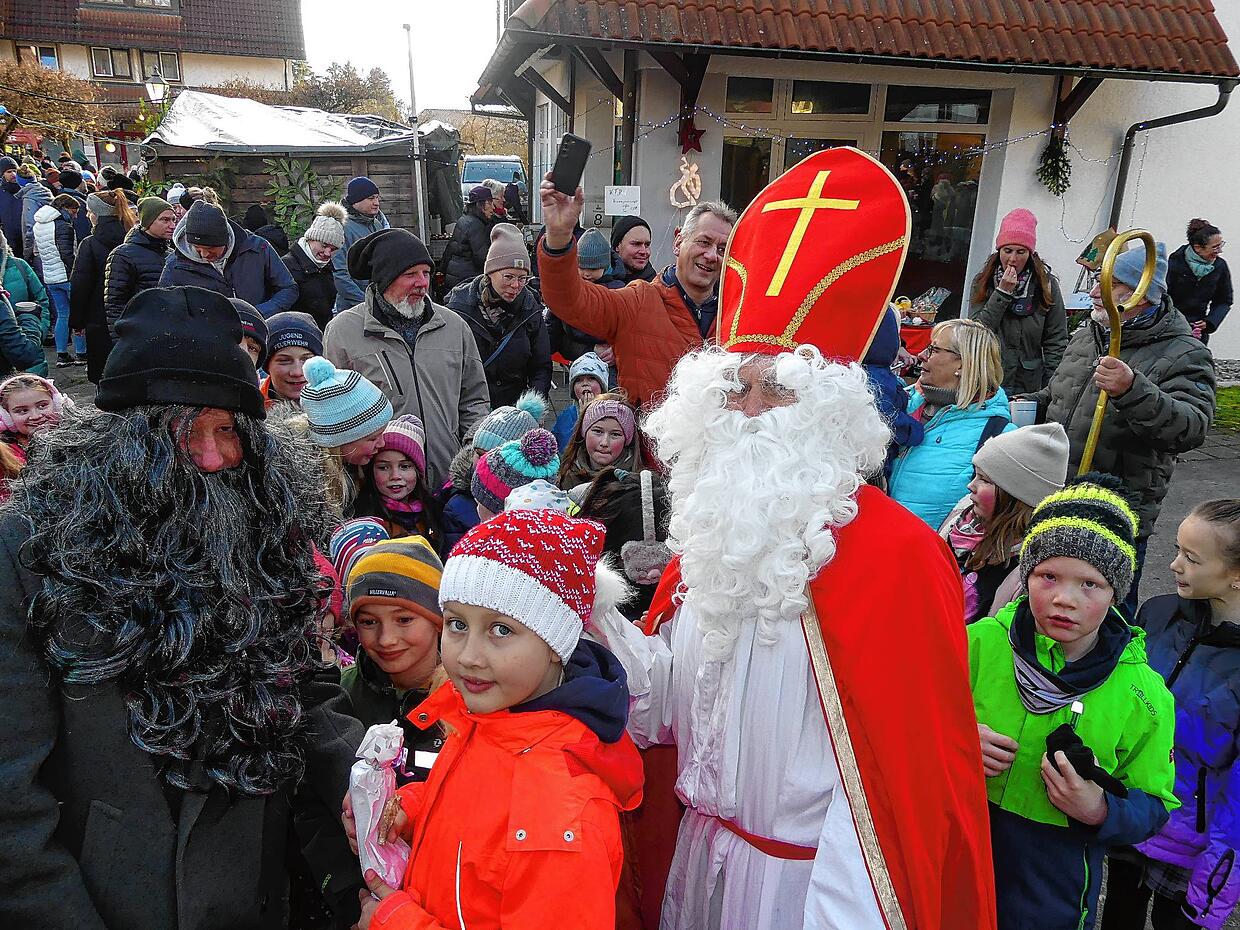 Zum 17. Mal hatten die Initiatoren, die Sternchen-Kinderhilfe um die Familien Daiber und Zimmerhackl, mit dem Sportverein, den Ministranten, der Jugendfeuerwehr, der Feuerwehr, der Grundschule Klassen 3 sowie der Katholischen Frauengemeinschaft zum Miteinander eingeladen. Während etliche Besucher zeitweise Schlange stehen mussten, um von Waffeln oder Grillwürstchen abbeißen zu können, gab es eine Überraschung für die Kleinen: Nikolaus (Hans Peter Laube) und Knecht Ruprecht (Gerd Miez) teilten an die Kinder Säckchen aus und kamen dabei in ihren Gewändern und unter ihren Rauschebärten ins Schwitzen.