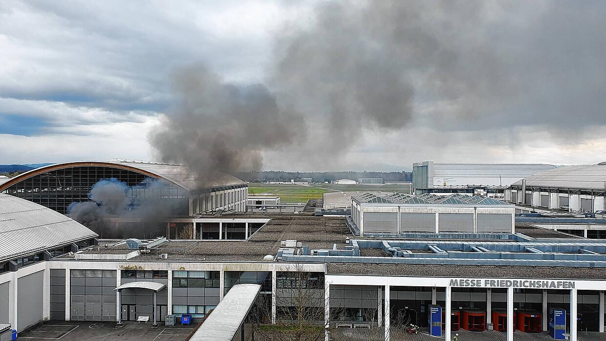 Bild 1: Feuer auf Messegelände! So dramatisch war der Einsatz der Feuerwehr in Friedrichshafen