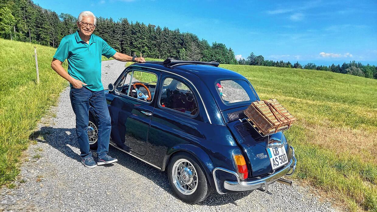 In seiner Jugend ist Achim Schirmann einen VW Käfer gefahren, jetzt fährt der 75-jährige Markdorfer voller Begeisterung mit einem Fiat 500 L, auch bekannt als Nuova 500, durch die Gegend. Wenn er mit dem kleinen blauen Flitzer unterwegs ist, dann sorgt er bei den Menschen für Begeisterung.