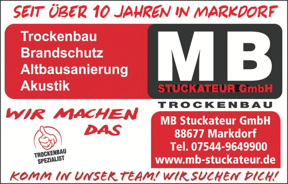 Markdorf Die MB Stuckateur GmbH ist nicht nur ein einfacher Stuckateurbetrieb, sondern ein Team aus Spezialisten für Trockenbau, Brandschutz, Akustik und Altbausanierung in Baden und Oberschwaben. 2013 als Ein-Mann Betrieb von Markus Birkle gegründet, zeichnet sich die MB Stuckateur GmbH mit Sitz im Markdorfer Gewerbegebiet Negelsee durch eine hohe Fachkompetenz, handwerkliche Qualitätsarbeit und eine professionelle Kundenberatung aus. Die herausragende Arbeit und dem guten Ruf ist es zu verdanken, dass im Laufe der Jahre immer mehr Kunden aus dem privaten Bereich, aber auch Unternehmen, Architekten und Bauträger die gute Arbeit der Firma zu schätzen wissen. Weit über 1000 Projekte konnte es in dieser Zeit erfolgreich umsetzen. Der Chef und seine Mitarbeiter bilden sich fortlaufend weiter, um so immer auf dem neusten Stand der Technik zu sein. Großen Wert legt Markus Birkle darauf, dass auch sein Fuhrpark und das Arbeitsmaterial immer auf dem neusten Stand sind.