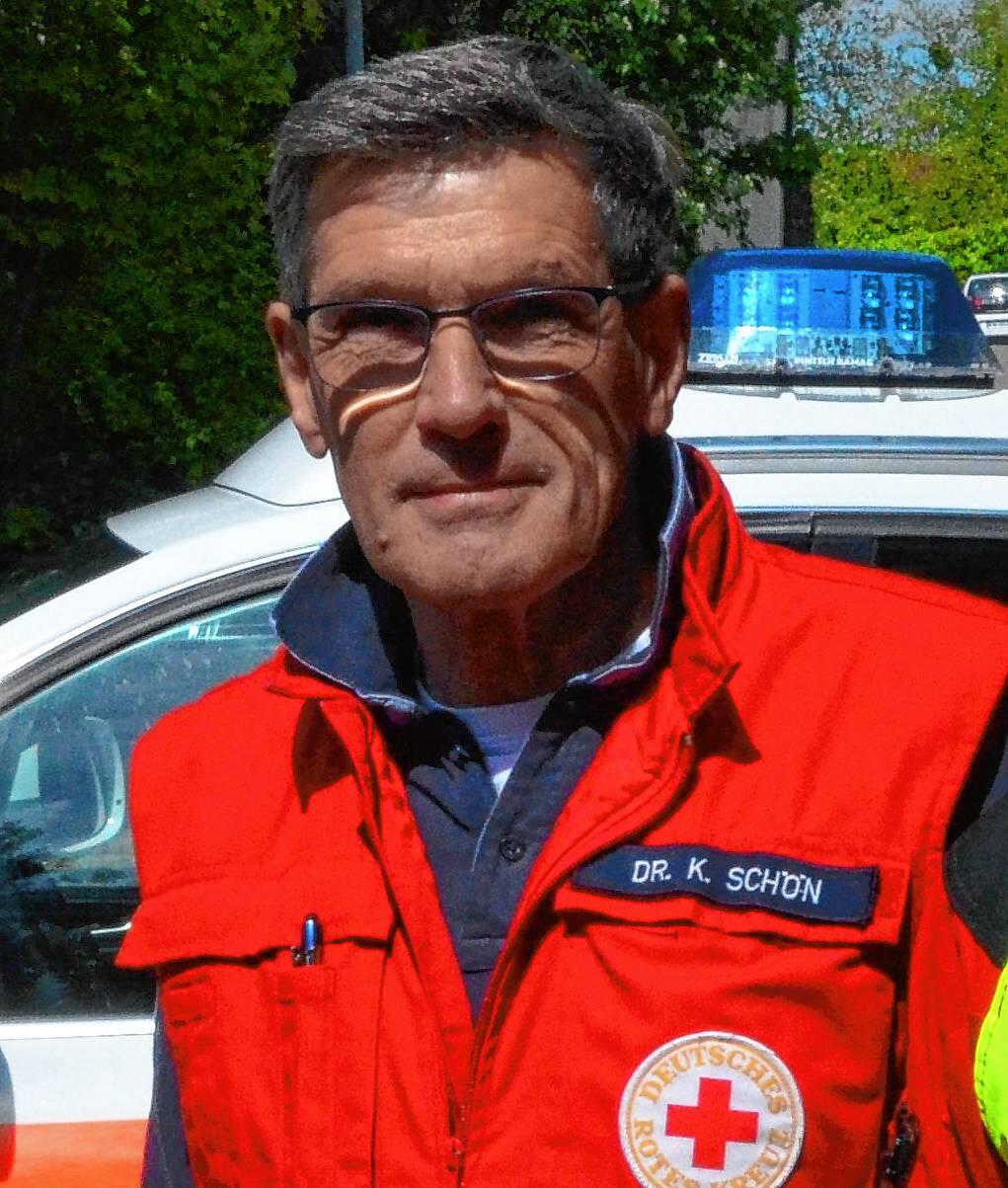 Zuallererst aber, das heißt auch noch vor dem Notruf, muss erste Hilfe geleistet werden, erklärt Dr. Klaus Schön, Facharzt für Sport- und Allgemeinmedizin. „Das Ansprechen des Leblosen, das ihn An-der-Schulter-Rütteln, das Die-Atmung-Prüfen – und bei Atemstillstand mit der Herzdruckmassage beginnen.“
