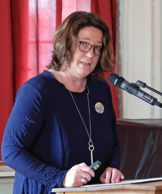 Mit großer Aufmerksamkeit verfolgten die Gäste den Festvortrag der Friedrichshafener Journalistin Katy Cuko zum Thema "Wasser – Der Bodensee". Cuko, Mitarbeiterin beim SÜDKURIER, schlug einen Bogen vom beliebten Freizeitgewässer über die Veränderung und Gefährdung der Wasserqualität bis hin zum Ertragsrückgang der Fischer. Am Ende skizzierte sie die Gratwanderung bei der Entscheidung für oder gegen Experimente mit einer Aquakultur am Bodensee und zeigte die offenen Fragen auf.