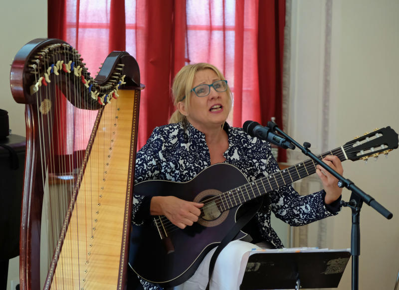 Stimmungsvoll begleitet wurde der Empfang von Claudia Pohel mit poetischen Liedern zu Gitarre und Harfe. Ihre eigene Komposition "Duft vom See" hätte passender zu dem sonnigen Tag nicht sein können und ging zu Ende mit der Zeile: "Frühling magst hereinspazieren." Hinaus spazieren in den Museumsgarten konnten die Soroptimistinnen anschließend zu einem Aperitif mit kleinem Imbiss.