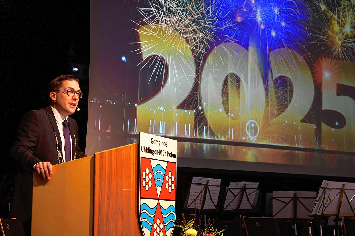 Mit einem Appell, am 23. Februar zur Bundestagswahl zu gehen, hat Bürgermeister Dominik Männle seine knapp einstündige Rede zum Neujahrsempfang der Gemeinde Uhldingen-Mühlhofen im Welterbesaal eröffnet. „Lassen Sie uns alle zusammen für unsere Werte einstehen, unsere Demokratie schützen. Das geht nur, wenn auch jeder Einzelne etwas dafür tut“, sagte er. Denn nur wer wählen gehe, sorge mit seiner Stimme dafür, dass die Parteien „ganz rechts und ganz links am Rand“ nicht zu stark würden. „Und gerade jetzt benötigen wir in Deutschland eine stabile Regierung, die uns aus der Krise bringt.“