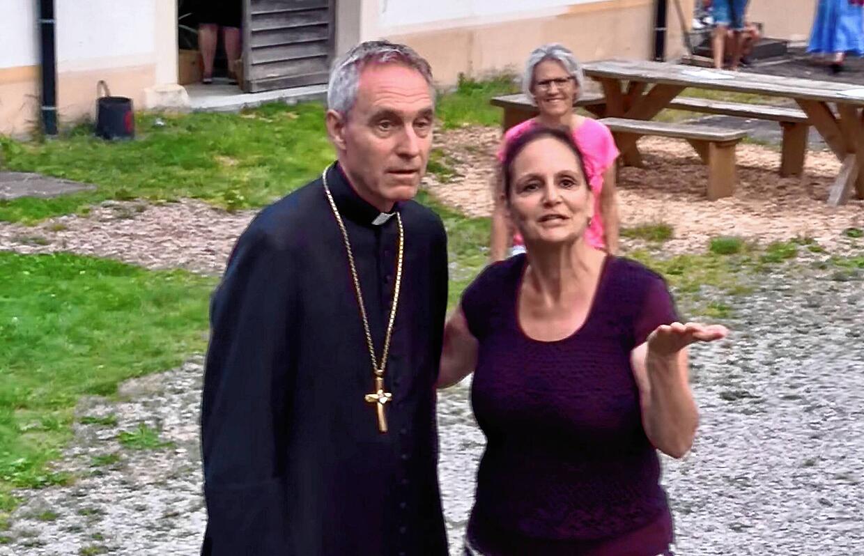 Seit Ende Februar laufen die Proben für die neuen Freilichtspiele „Die Schwarze Rose“. Schirmherr der Festspiele Erzbischof Georg Gänswein stattete der Theatergruppe am 12. August während seines Kurzurlaubs einen Probenbesuch im Klostergarten ab. Dass er sich trotz nur kurzem Aufenthalt in Riedern die Zeit nahm, eine Weile zuzuschauen und sich über Besetzungen zu erkundigen, schätzt Vorsitzende Corinna Vogt besonders.