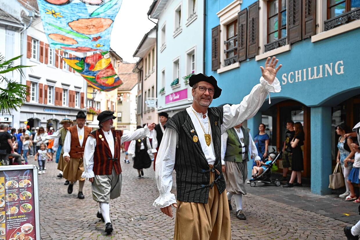 Nicht nur vom Bund Heimat und Volksleben, dessen 75-jähriges Bestehen am Schwyzertag gefeiert wurde, erhielt die Zunft positives Feedback für den Festumzug am Sonntag und eine Einladung auf den Vogtsbauernhof. Die Stimmung auf dem Marktplatz und in der Fußgängerzone war bestens, weshalb einige Gastgruppen ihre Abreise spontan nach hinten verschoben. Der Belcanto-Abend am Storchenturm Sonntagabend mit dem Ensemble „Muss“ unter der Leitung von Markus Süß mit Künstlern aus der Region war bereits im Vorfeld ausverkauft – Wiederholung im nächsten Jahr erwünscht. Dass die Jüngeren nicht nur auf der Bühne bei verschiedenen Darbietungen bella figura machen, sondern sich auch auf die künstlerische Umsetzung des durchaus anspruchsvollen Themas „Badische Revolution“ verstehen, erwies sich am Montag beim „Tag der Schulen“ sowie bei der Preisverleihung zum Kunstwettbewerb.