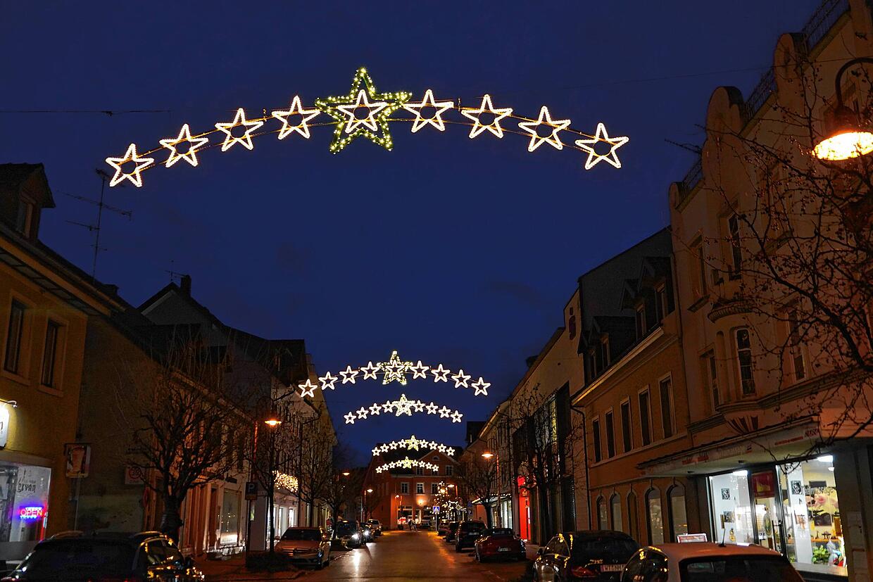 Neu sind 19 Überspannungen mit Sternen über die obere und untere Hauptstraße, die Peter-Thumb-Straße und die Heckerstraße.