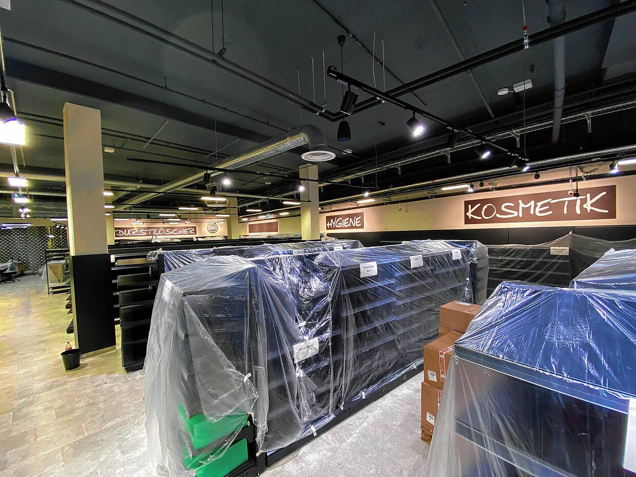 Ladenbauer haben mittlerweile zig laufende Meter Regale, modernster Bedientheken, Gefrierschränke und Themeninseln aufgebaut, die in den kommenden Wochen bis zur Eröffnung am 19. November befüllt werden. Knapp zwei Millionen Euro investiert die Familie Münchow in die Innenausstattung des neuen Vollsortimenters.