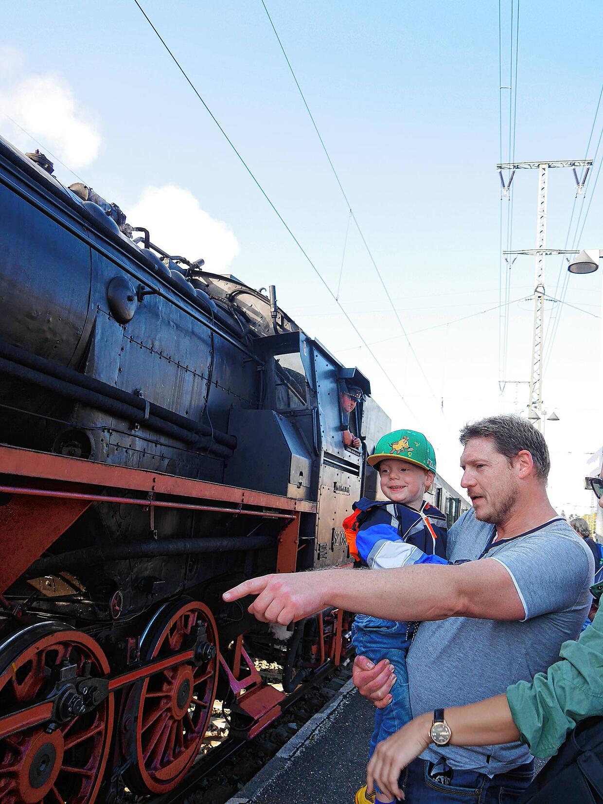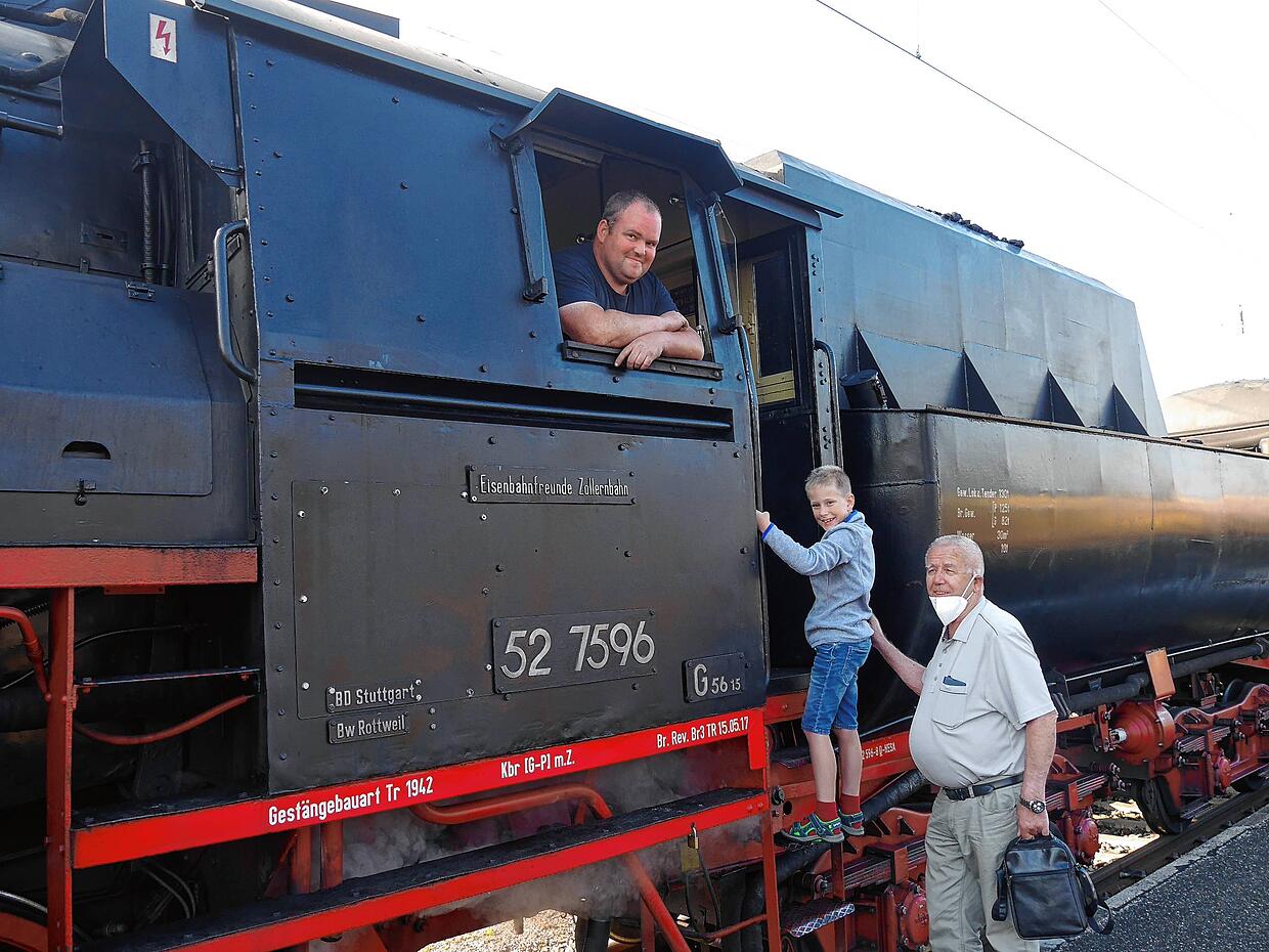 Karl-Heinz Terlecki aus Singen freute sich, dass Fahrten mit dem historischen Zug jetzt endlich wieder stattfinden können. Der neunjährige Fabian, der mit Opa Alfred Pohl unterwegs war, outete sich als junger Eisenbahn-Nostalgiker mit einer großen Begeisterung für Dampfloks.