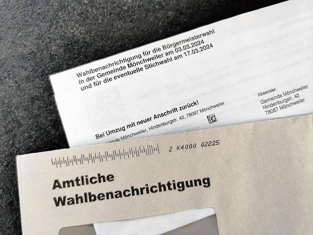 In Mönchweiler sind 2439 Wahlberechtigte eingeladen, ihren neuen Bürgermeister zu wählen. Einziger Bewerber ist Rudolf Fluck. Wie auch bei den Kommunalwahlen gilt ein Wahlrecht ab 16 Jahren.