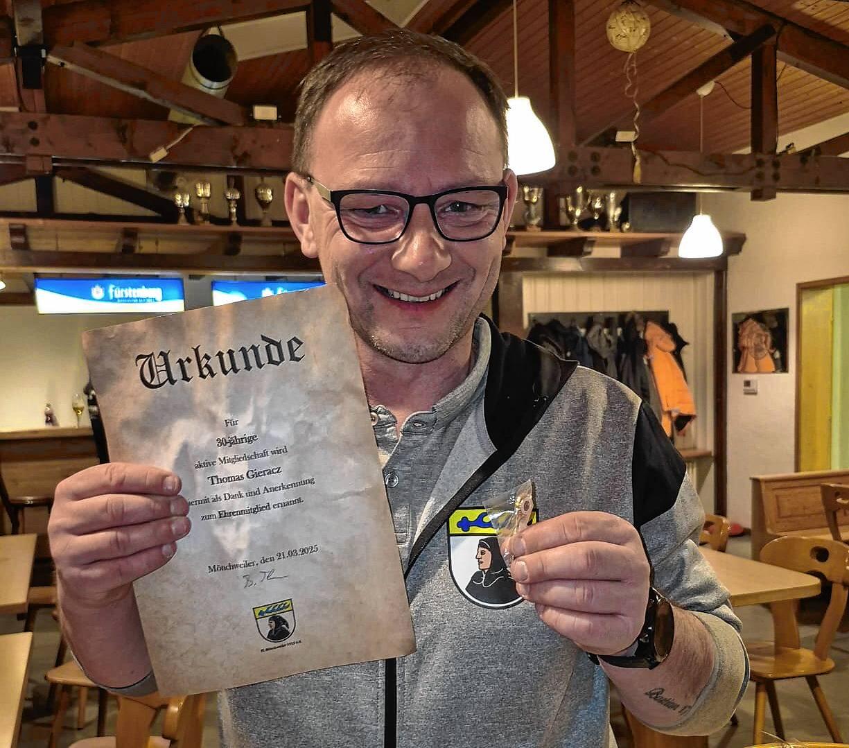 Bei den Neuwahlen gab es im geschäftsführenden Vorstand zwei Wechsel. Als Nachfolger von Schriftführer Felix Bösinger und Kassierer Niklas Müller wurde Benjamin Thorn gewählt. In den Kreis der Ehrenmitglieder wurde Thomas Gieracz mit der Ehrung für 30 Jahre aktive Mitgliedschaft aufgenommen. Für zehn Jahre aktive Mitgliedschaft wurden Moritz Hornstein, Felix Bösinger und Nick Müller geehrt, für 40 Jahre Holger Müller. Seit 50 Jahren ist Uwe Schmidt Vereinsmitglied, seit 60 Jahren sind es Heinrich Obergfell, Gerhard Wodtke, Oskar Hager und Ewald Lehmann. Edwin Heuberger sowie Hans Bredl sind seit 70 Jahren Mitglieder des FC Mönchweiler. Torschützenkönig wurde John Camara mit neun Treffern. Moritz und Niklas Hornstein hatten mit 73 Einheiten die beste Trainingsbeteiligung.