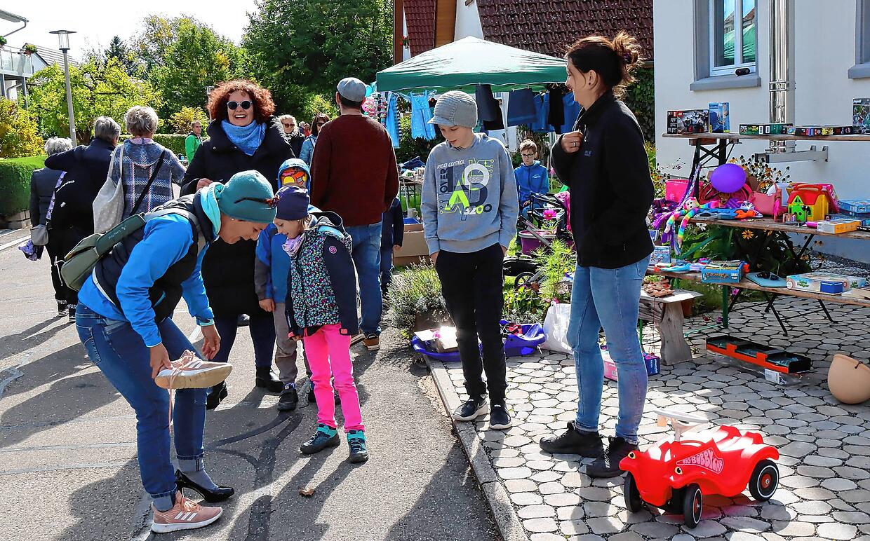 Als Ulrike Kille-Kieninger und Tanja Stojkoski im vergangenen Jahr mit der Idee des Dorfflohmarktes starteten, war ungewiss, wie die Aktion ankommen würde. Doch gleich beim ersten Mal waren rund 120 Teilnehmer dabei. Dass das in diesem Jahr wieder so sein würde, da hatten die beiden Organisatorinnen ihre Zweifel. Letztlich wurde die Premiere aber noch übertroffen. Noch einmal zehn Standorte mehr konnten die beiden Frauen im Dorfplan verzeichnen. Unterm Strich war die Anbieterzahl noch wesentlich höher, denn in vielen Hauseinfahrten und Gärten hatten sich gleich mehrere Familien zusammengeschlossen.