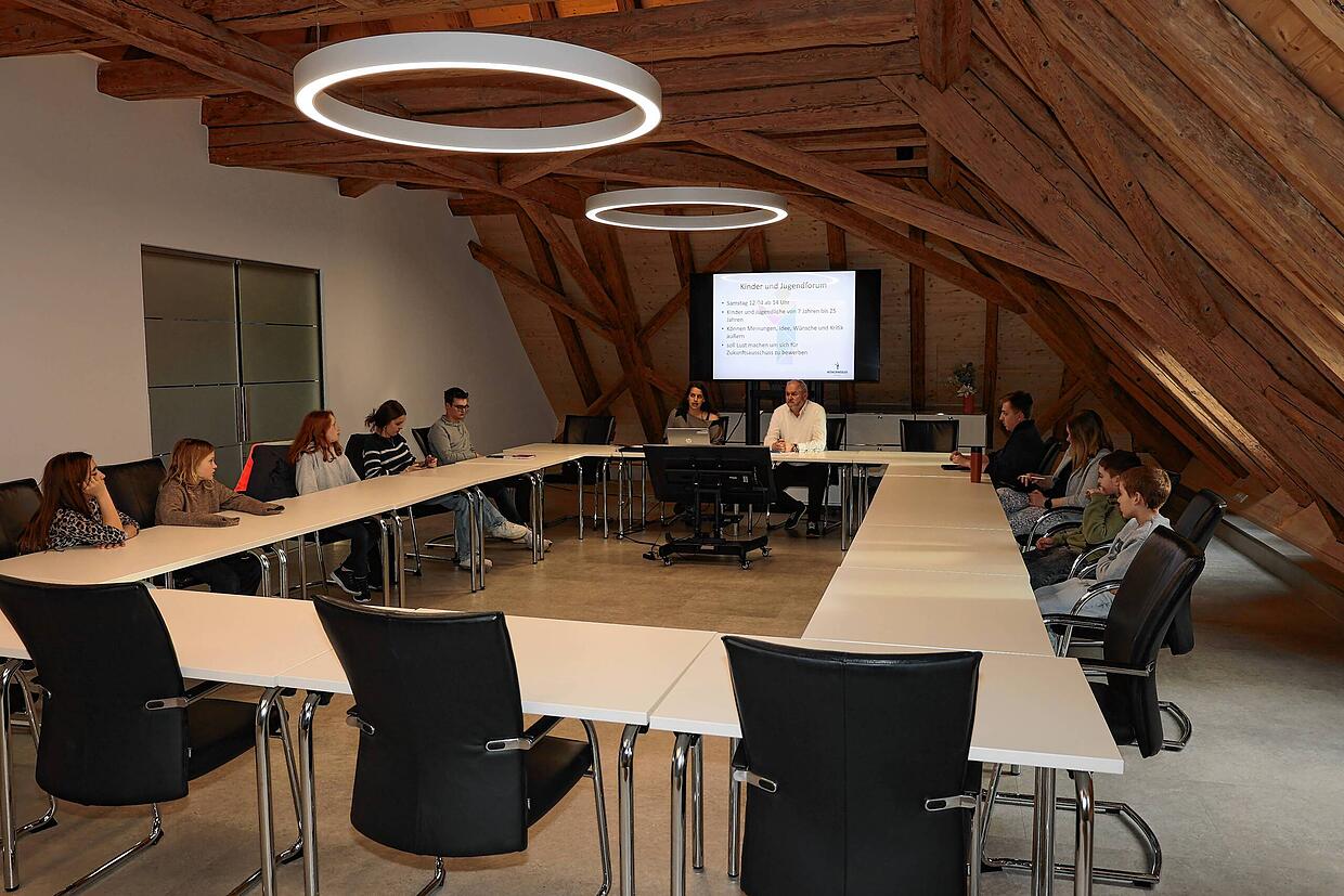 Mönchweiler Sitzungsstunde im Ratssaal des Rathauses Mönchweiler mit Bürgermeister Rudolf Fluck und Kinder- und Jugendkoordinatorin Samira Bensmail: Am Ratstisch sitzt nicht der Gemeinderat, sondern da sitzen die Vertreter der Jugend in der Gemeinde, die sich im Zukunftsausschuss für die Wünsche und Belange der jungen Gemeindemitglieder einsetzen, Projekte entwickeln und aktiv an deren Umsetzung mitwirken. „Für Verwaltung und Gemeinderat ist wichtig, dass wir gerade nach der Pandemie auf Familien und Jugendliche zugehen, um der Jugendarbeit in den Vereinen, aber auch in der offenen Jugendarbeit einen Rahmen zu geben“, so Bürgermeister Fluck. Mönchweiler habe erfreulicher Weise viele Zuzüge junger Familien, 30 Prozent der Bürgerinnen und Bürger seien unter 30 Jahre alt.