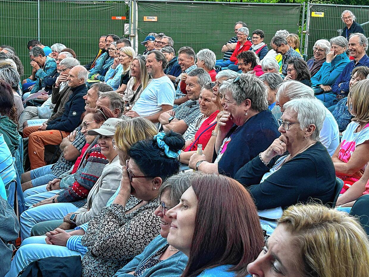 Bei den zahlreichen gelungenen Gags gibt es spontanen Szenenapplaus. Mit ständigem Grinsen verfolgen die Zuschauer das turbulente Geschehen auf der Bühne. Die letzten Sonnenstrahlen auf den Bäumen runden das gelungene Bühnenbild perfekt ab.